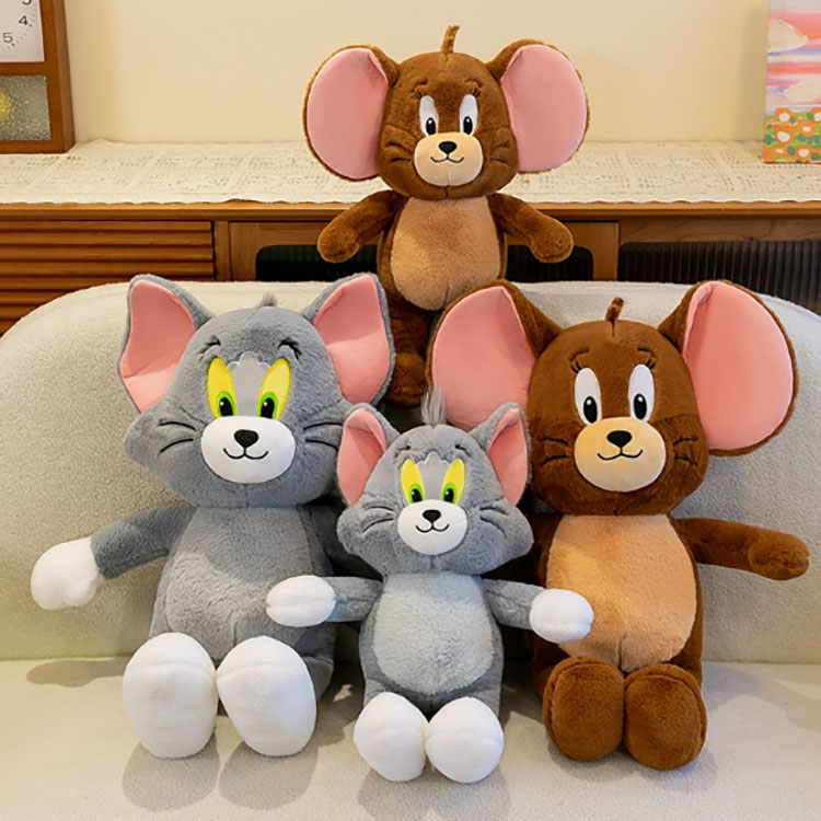 هذه لعبة قطيفة على شكل حيوان، تتميز بوجود قطة وفأر كشخصيتين. يمكن تقديم قطيفة توم وجيري كهدايا للأصدقاء، أو استخدامها كديكورات في الغرف أو غرف المعيشة. هذه اللعبة القطيفة تحظى بشعبية كبيرة. يتم تصنيع هذه المنتجات من قبل مصنع الألعاب القطيفة Zebra Party® وقد حصلت على شهادة السلامة.